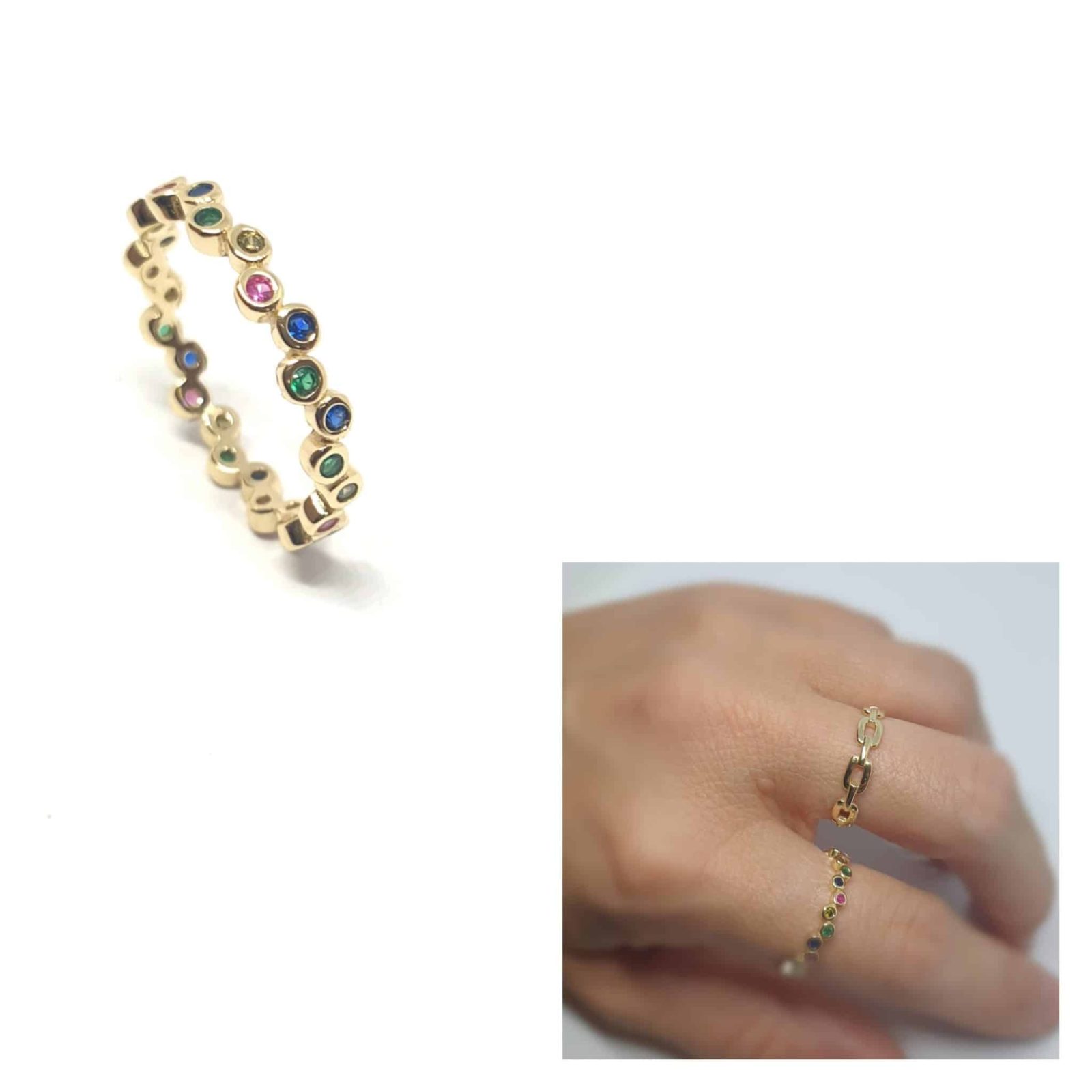 Anillo burbujas de colores en plata de ley con baño de oro 14 quilates.