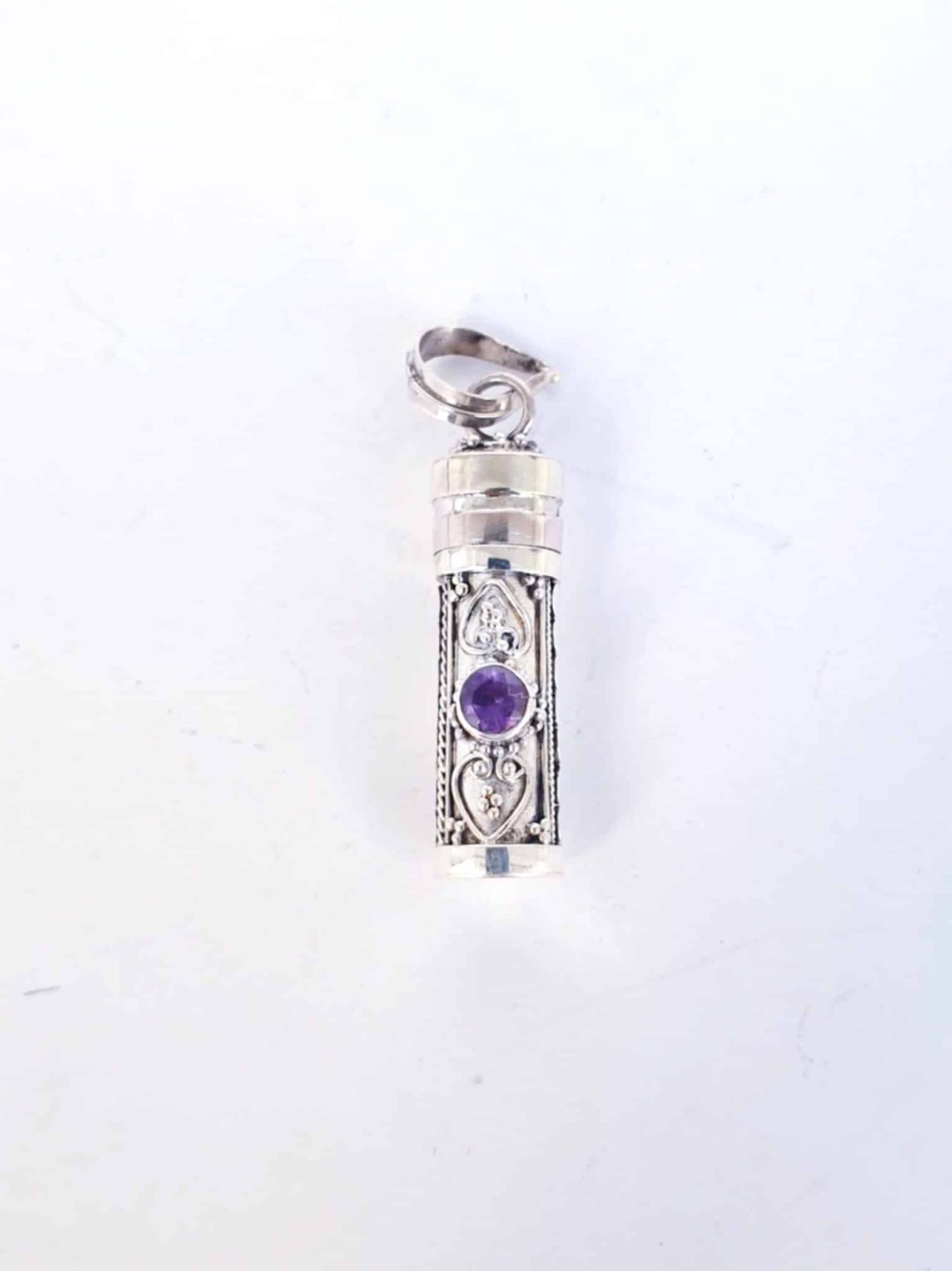 Cofre de los deseos con piedra natural de amatista, labrado a mano en plata de ley.