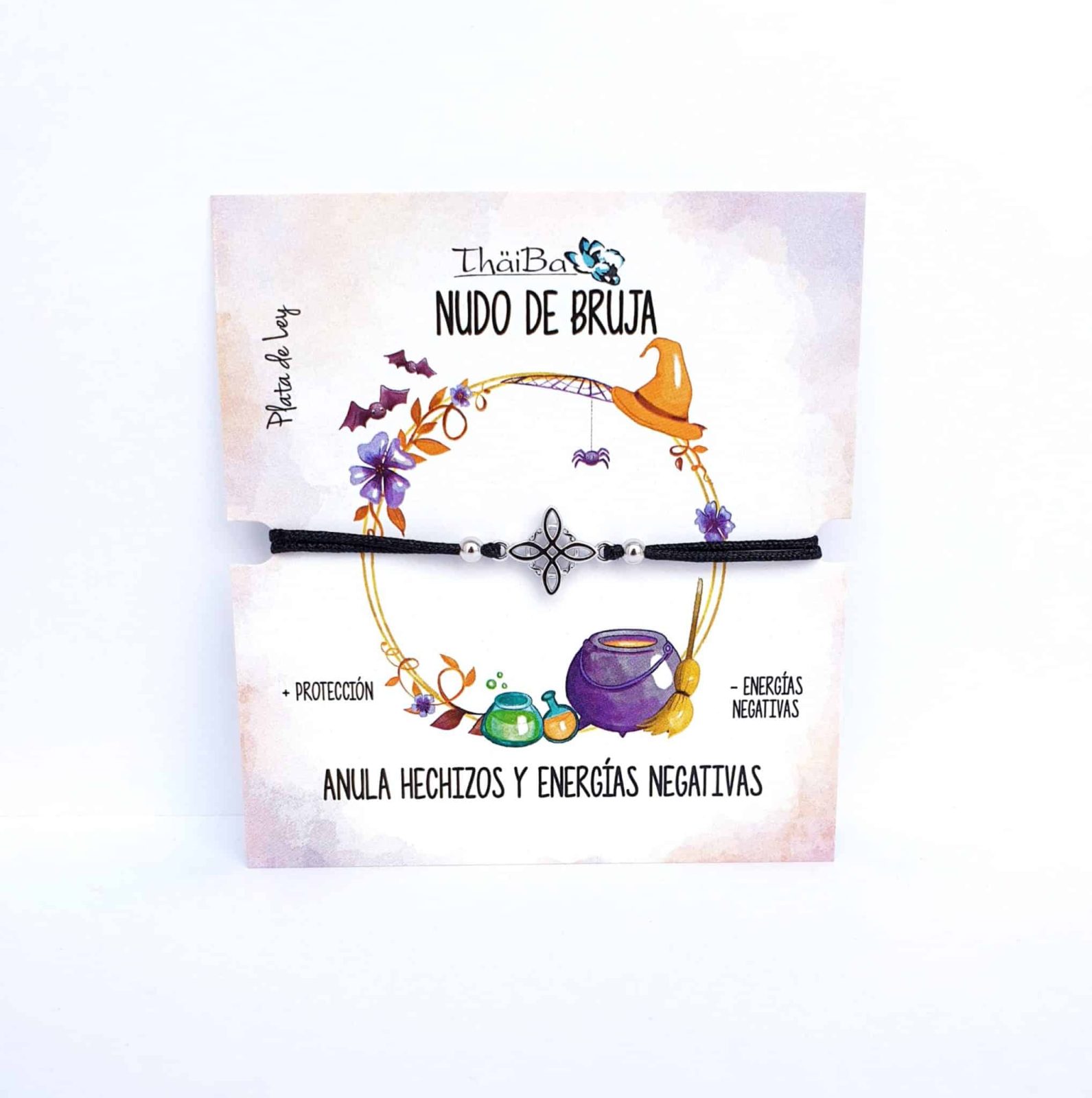 Pulsera hilo con símbolo de nudo de bruja de la suerte, en plata de ley. Ajustable.