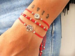 Pulsera hilo rojo, hilo de protección, con ojo protector en plata de ley. Ajustable.